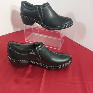 Eastland Shoes Womens 8M Amore Slip On Clog Loafer 3096-01 Black Leather Heels.