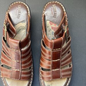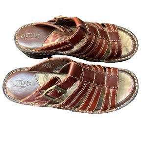 Eastland Women's Leather Sandals Size 10 Brown Fisherman Clogs Slip On Sandals