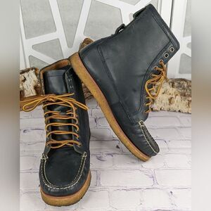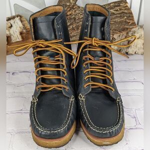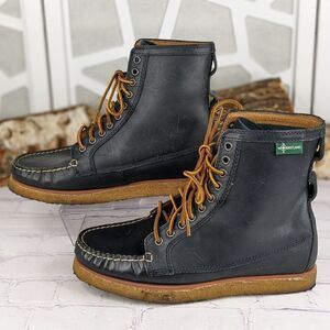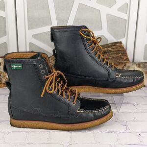 Eastland Women's Mackenzie 1955 Camp Moc Boot - Navy Blue **Please see pics. Some minor scuffing due to normal wear as shown in pics. Otherwise good condition. Handcrafted with a premium unlined leather upper Reinforced, two-tone taslan laces for easy on and off Pigskin leather-lined, Eastland Exclusive Active Memory Foam comfort insole supports and conforms to the curves of your foot Rubber midsole detail Natural plantation crepe rubber outsole provides slip-resistance, durability and shock-absorbing cushioning for all-day comfort Boot height: 5 3/4" Heel height: 6/8" FIT TIP: Fits true to size. #combat #gumbottom #biker #motorcycle #moccasins Bin A52