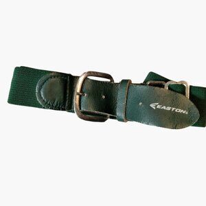 Easton's green baseball/softball belt is adjustable 28 to 32 inches, it's made from durable elastic, leather, and metal for long-lasting use.