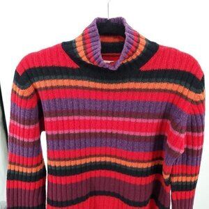 Eastside Westside Lambswool/Rabbit Hair Ribbed Multi-Stripe Turtleneck L, good used condition with light wear, no flaws.