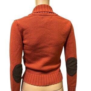 Eastside Westside Rust Knit Collared Pocket Elbow Patch Cardigan Sweater Women S