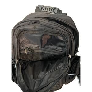 FEATURES: Internal felt lined padded tech / laptop sleeve, side hydration zipper pockets, sure snap - secures main compartment, prevents accidental opening, and acts as anti-theft deterrent, large rubber handle for a comfortable grip, double daisy chains to attach your gear, internal mesh zipper pocket and keychain dog clip, water-resistant texture bottom