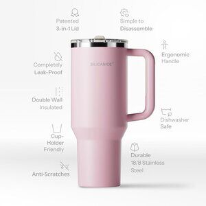 PERFECT FIT, EVERY TIME: With a NO-slip handle and a narrow base that fits most car cup holders,Narrow base fits 90% vehicle holders; Carry Handle Water Bottle with Handle & Straw prevents slips during runs or drives. 100% leak-proof design completely solves the problem of fitting some car cup holders the SILICANICE tumbler with handle is as easy to carry as it is to store. Ideal for your commute, gym bag, or next road trip, this insulated tumblers is always right by your side.
