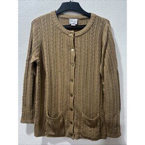 Easy Essentials Cable Knit Long Sleeve Sweater Cardigan Tan 2 Pockets XL cozy
