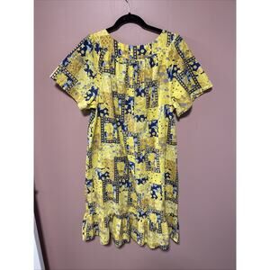 Easy Essentials Mumu House Dress Vintage XL Petite Cotton Pockets Yellow Floral