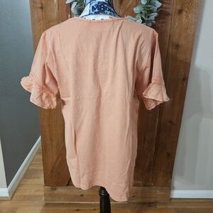 Easy Essentials Women's Size Large Peach Cotton Shortsleeve Boho Blouse