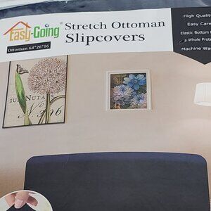 Easy Going Navy Blue Elastic Bottom Soft Stretch Ottoman Slipcover 64"x26"x16"...Great Color and Stretchy Pattern will Liven up that Old Ottoman...Great Texture and Feel will make your Room Look Like you Redesigned it All....Brand New In Package.....