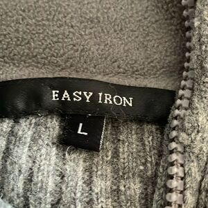Classic Easy Iron gray quarter-zip sweater - perfect for professional and casual wear! Features soft ribbed knit fabric with quarter-zip collar, long sleeves, and comfortable relaxed fit.
