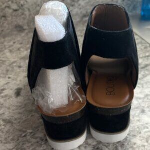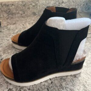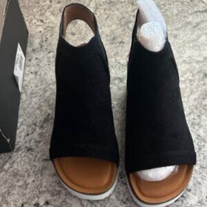 Easy Living “Corky” Black Suede-Look Peep-Toe Wedge Slingback Size 6