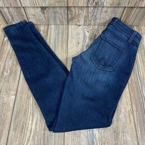Easy Money Jeans Company Womens 28x25 Skinny Fit High Rise Ankle Wedgie Mom Jeans Blue Medium Wash Whiskered Stretch Denim