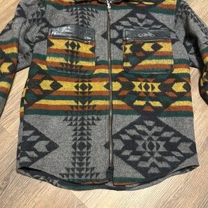 Easy Riders Leather Wool Jacket Motorcycle Native Navajo Aztec Print M vintage