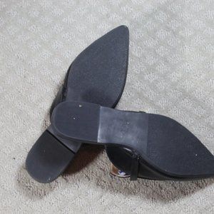 Easy Smile Size 9 Black Slide-on Black Pointed Toe Flats with Gold Chain Detail