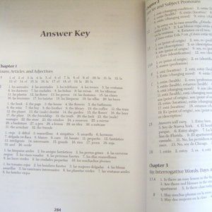 "Easy Spanish Step-By-Step" paperback book. "Master High-frequency grammar for Spanish proficiency--FAST! Learn Spanish in 15 quick and easy steps." This book is in good condition, but there is some pen writing in the book on the first chapter, but after that, it looks like all of the other chapters are writing free, clean and easy to read. The spine is good. There is general shelf wear to the cover, but not too bad. This is an excellent resource book for anyone learning Spanish. Answer key in the back.