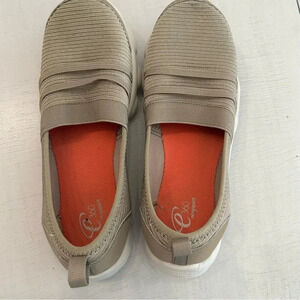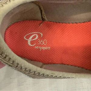 Easy Spirit 360 Women’s Tan Fabric Striped Slip On Casual Tennis Shoe Size 7 GUC