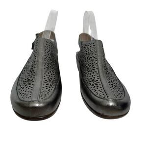 Easy Spirit 9.5 Silver Leather Closed Toe Cut out Flats Velcro Sling back Shoes