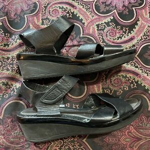 Easy Spirit Anti Gravity Sandals size 8.5 color black Velcro closure at ankle. 2 1/2 inch heel. Signs of wear and tear on the inside of the straps please look at the pictures closely. Shoes have a lot of life left. Shoes are comfortable and great for walking, Please make an offer.