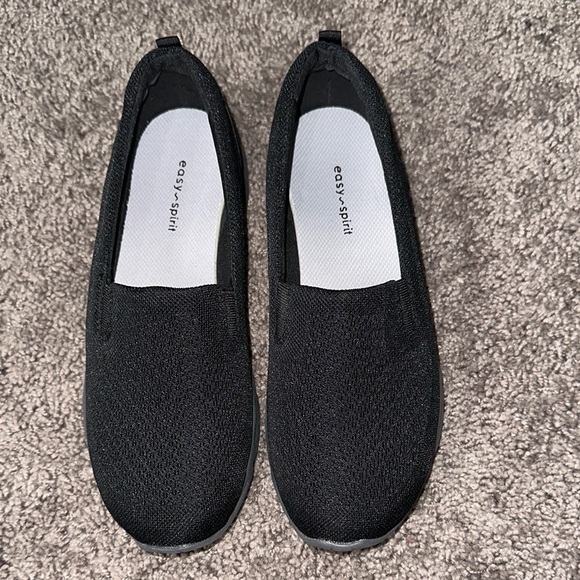 Comfortable black flats. Slip-on design. Perfect for everyday wear. Marked a size 9 but I’d say they’re closer to 9.5 if you don’t plan to wear them with socks. Minimal wear.
