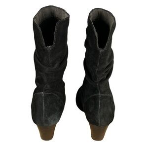 Easy Spirit Black Genuine Suede Leather Stacked Heel Slouchy Boots Sz 8.5 Wide