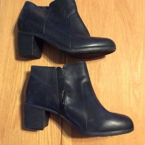 Ultra-comfortable Billian booties will complement virtually any outfit in in your closet. Wear them with jeans, leggings, or a dress with tights. You can't go wrong. Side zipper for easy on/off. Stacked heel. Black leather, like brand new!!!!