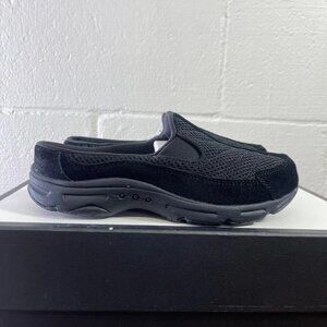 Easy Spirit Hotracings Black Leather Textile Mule Slip On Women's 6.5 US/5 UK