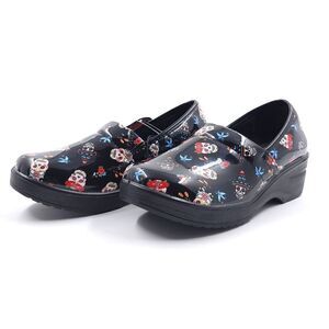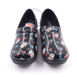 Easy Spirit Laurie Day of the Dead Skulls Black Clogs Womens 6M Slip Resistant