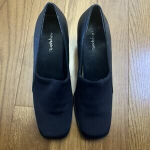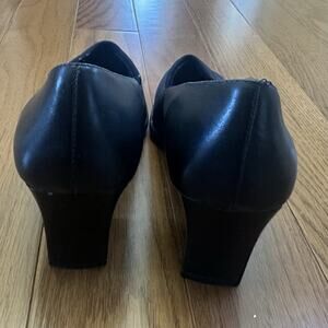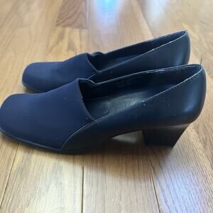 Easy Spirit Leather Block Heel Comfort Shoes CareerSquare Toe Black Size 7W