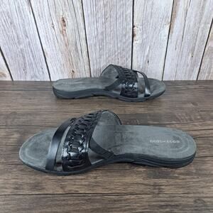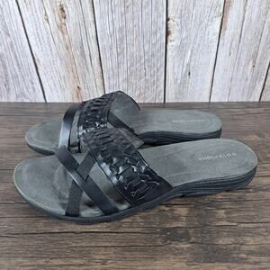 Easy Spirit Linley 3 Faux Leather Slide Sandals Gray Black Womens 9.5 Wide NWOB