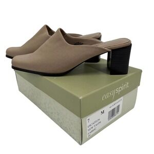 Easy Spirit Shoes Caitlin Taupe Fabric Block Heel Mules 7 M