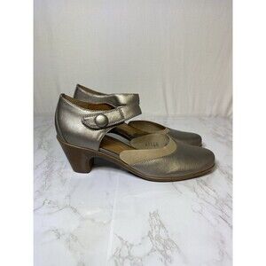 Easy Spirit Shoes Womens 9N Narrow Clarice Mary Jane Metallic Leather Cone Heels