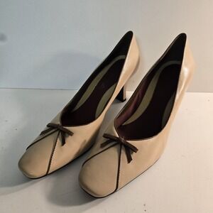 These Easy Spirit Size 8 M Beige Nude Leather Round Toe Smartshoe Pumps are a stylish and versatile choice for various occasions such as parties, formal events, christenings, and business meetings. The slip-on style with a mid-height cone heel and maximum cushioning provides comfort and ease of wear. The classic design features piping and a bow accent, adding a touch of sophistication to the solid color nude pump. Made with leather and synthetic materials, these shoes are both durable and fashionable, making them a timeless addition to any woman's shoe collection. These are new in the original box and ship next business day. #22