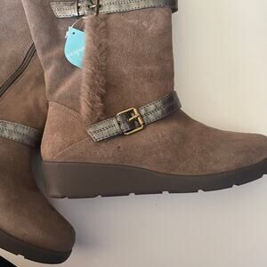 Easy Spirit Taupe/Brown Esusko Leather Upper Faux Fur Moderate Wedge Boot - 9.5
