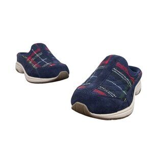 Easy Spirit Travel Time 701 Dark Blue Suede Plaid Slip-On Clogs Womens 7M