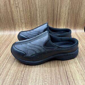 Easy Spirit Traveltime Clog Black and Pewter Leather Velvet Women's Size 9WW