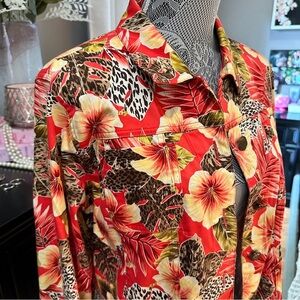#EasySpirit #TropicalJacket #FloralJacket #VacationStyle #HibiscusPrint #WomensJackets