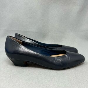 Easy Spirit USA Made Vintage Women’s Sz 7 Blue Leather Slip On Casual Heel Pump
