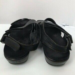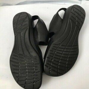 Easy Spirit Womens Black Leather Sandals Adjustable Straps Comfortable Flat 5m