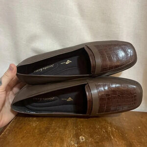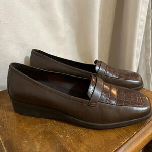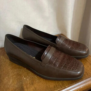 Easy Spirit Womens Crocodile Oxford Leather Slip On Comfort Loafers Size 8.5 BD