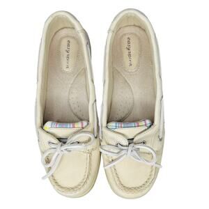 Easy Spirit Women's Ecru Plaid Nubuck Leather Boat Shoe 7.5M
