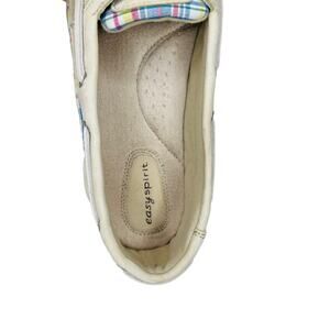 Easy Spirit Womens Ecru Plaid Nubuck Leather Boat Shoe 7.5M Slip-On Cushioned