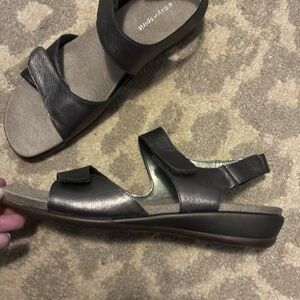 Easy Spirit Womens Hartwell Pewter Leather Slingback Wedge Sandals Shoes Narrow