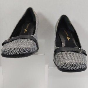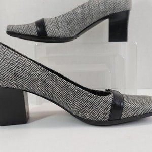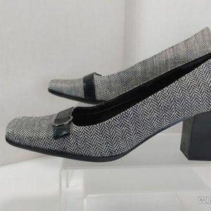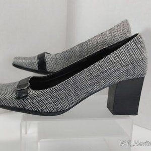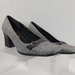 Easy Spirit® Women's Herringbone and Black Leather Block Heels Size US 6