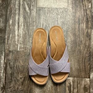 Comfortable and chic lavender sandals. Ideal for everyday wear.