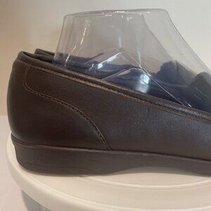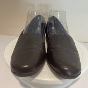 Easy Spirit Womens Leather Slip On Loafers Size 8.5M Brown Square Toe Minimalist