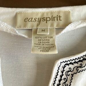 Easy Spirit Women’s (M) White Embroidered Tunic Blouse 3/4 Sleeve Boho