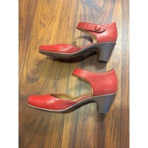 Easy Spirit Women's Red Leather Clarice Block Heel Mary Jane Pumps Size 8.5