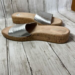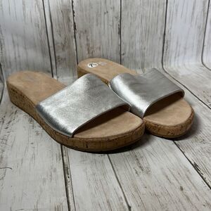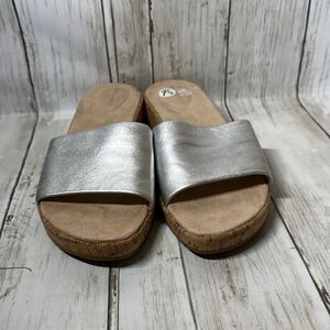 Easy Spirit Women’s Leather Silver Open Toe Sandals Casual Slide Semuscari Cork size 7.5