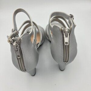 Easy Street 7.5M Silver Satin Open Toed Sandal w/Zipper Back & 3" Heel
