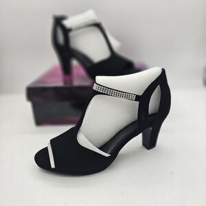 Easy Street Black Lamy Embellished Heeled Sandals Size 9