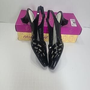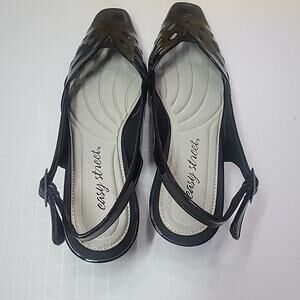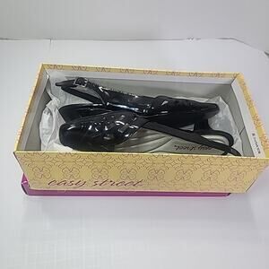 Easy Street Adorable Sz 7 Slingback Kitten Heel Pumps Black Patent Free Ship